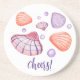 Salve seus móveis com estes porta-copos de pedra redondos com conchas de aguamarinha roxas e violetas, com texto personalizável para escrever um monograma, nome ou palavra favorita.