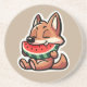 Imagem engraçada de um Coyote comendo uma melancia. A borda pode ser removida e a cor do plano de fundo alterada.