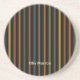 Modern coaster featuring dull-tone ribbon stripes on a black base, complete with customizable name. Makes a thoughtful birthday or holiday gift and pairs perfectly with the matching mug and fleece. Build a coordinated personalized gift set for anyone on your list.
