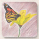 Portas copos com uma borboleta de monarca que descansa em uma flor amarela. Um grande presente para alguém apenas que move-se para fora ou que procura algo novo e diferente para ter em sua casa.