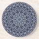 Uma mandala concêntrica, tipo rendas, em azul-claro, com pontos azuis brilhantes e dourados, girados entre as camadas, faz um design divertido, que traz à mente um céu noturno estrelado.