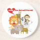 Um leão, um girafa, um macaco, uma zebra, e um elefante com um coração e um texto vermelhos que leia o amor nossos amigos animais em t-shirt, em bodysuits, em babadores, em coberturas, em travesseiros, em pulsos de disparo de parede, em cartões, nas correntes chaves, nos mousepads, nas canecas, nas bolsas, nas etiquetas, e em mais!