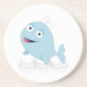 Uma baleia azul saltando da água. Personagem de desenho animado.