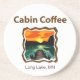 Uma ilustração inspirada em madeira de pôr sol sobre a doca e o lago, com o título Café de Cabina sobre ele, que faz a montanha russa perfeita para a cabana, ou de sair no barco.