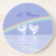 Porta copos de Sandstone com meu design original de dois corações de diamante flutuando na água sob um arco-íris com texto personalizável que diz "60 anos".