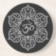 Um Aum ou um OM projetam sentam-se dentro de uma flor de lótus estilizado. O teste padrão circular é colorido com um cinza profundo que seja destacado para criar um brilho claro na superfície. O fundo é o preto puro pintado que pode ser considerado através do espaço negativo da flor. Esta porta copos à moda é uma representação impressionante deste símbolo espiritual.