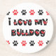 Eu amo meu buldogue! Um design preto-branco-e-vermelho corajoso que caracteriza lotes dos corações e dos impressões da pata do cão. Excelente para algum proprietário do buldogue que amar seu cão.