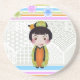 Boneca de kokeshi com padrão noshi no seu quimono.