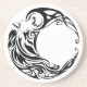 Design tribal que caracteriza um lobo do urro em uma lua crescente.