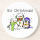 Um design de feriado bonito com dois homens de neve e um pinguim vestidos de cachecol, chapéus de inverno, e algemas e texto que diz É Natal em T-shirts de férias, camisolas, canecas, bolsas, cartões, autocolantes, guardas, travesseiros e muito mais!