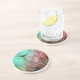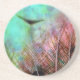 As bolhas de pastel de aqua, turquesa, azul e rosa e roxo são um pano de fundo para estas pintas de pavão sabiosas