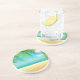 Imagine-se na praia com um design com uma cena de praia tropical cheia de palmeiras, areia e surf.