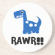 Dinossauro azul bonito (e fofo) com manchas. O texto abaixo lê, Rawr!! Isto é muito fofo para qualquer fã de dinossauros.
