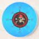 Crânio clássico e Crossbones, O Jolly Rodger, com bandana vermelha no centro de um estilo vintage Compass Rosa e um fundo oceânico.