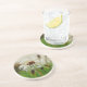 Uma cápsula de semente de dandelion úmida no meu gramado. Gotas de chuva em todo lugar, dia escuro mas quente de chuva no País de Gales