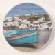 Porta-copos De Arenito Zona portuária com navios de pesca gregos