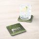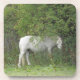 Esta incrível porta copos de cortiça mostra uma bela fotografia de um lindo cavalo branco parado debaixo de uma árvore parecendo um pouco tímido.