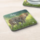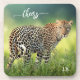 Grande porta copos de gato apresentando um leopardo em uma savana pastosa.