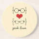 Porta copos de óculos geeks bonitos e brancos apresentando um coração vermelho flanqueado por dois pares de óculos geeks, um par de manly e um par feminino. Esta doce porta copos de arenito manterá sua mobília limpa e adicionará talento nerd a qualquer decor! Fácil de personalizar, basta adicionar o texto personalizado de sua escolha. Clique em "Personalizar" para encontrar mais opções de personalização.