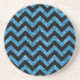 Hip e Trendy Chevron Glitter Porta copos de aparência. Esta porta copos legal apresenta um padrão de zag zag em forma de guiões em cima de um fundo brilhante azul de arte digital. Adicione texto a este design para lhe dar um toque pessoal.