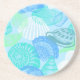 A porta copos de Sandstone é mostrada com um impressão de conchas coloridas em cores azul e verde. Personalize este item ou comprar como está. Imagem do stock freepik.com