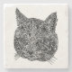 Cabeça ornamental branca e negra de um gato, inspirada num animal vivo e originalmente desenhada com caneta no papel.