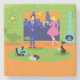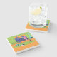Esta Porta copos de Pedra da Noite Romântica Retroativa parece uma cena de uma comédia romântica de 1960. O design minimalista apresenta um casal de desenho animado atraente na sala de estar de um meio século moderno e urbano. A sala apresenta de forma destacada uma parede verde de pedra com uma janela de chão a teto, com vista para uma vista. Pela janela, podemos ver a silhueta azul de um horizonte de uma cidade grande. Uma lua crescente é visível no céu laranja do pôr do sol. Os fornos da sala incluem uma cadeira verde, de salão, com fezes correspondentes, uma luminária amarela, e uma lareira em forma de cone e turquesa, completa com fogo em rugas. No centro do pavimento laranja, há um tapete redondo, verde. Um toca-discos, turquesa e preto, portátil, é colocado no tapete. Ao lado do toca-discos, um registro de vinil pode ser visto saindo de um cobrir de álbum de kitschy. Também no tapete, há um gato preto e elegante vestindo um colarinho. Este felino rico está sentado na frente de um copo de martini. Aproveitando esta cena, temos um casal muito sofisticado. Há um homem de calda vestindo um terno azul, camisa azul clara e gravata vermelha. O homem alto, escuro e bonito está gostando da companhia de uma mulher loura elegante. A adorável senhora está vestindo um vestido rosa quente com uma forma de cordão e saia fria. Cada um deles segurando um vidro de cristal martini com uma azeitona flutuante.Felicidades! Aqui está a noite perfeita em casa!
