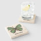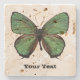 Porta copos de pedra bonito com gráficos digitais de uma borboleta verde e marrom. O texto preto afligido lê o que quer que você o quer dizer. Faz uma ideia bonita do presente.