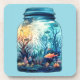porta copos de plástico duro com um boião com peixes e cena oceânica.