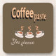 porta copos de plástico duro, denominada Coffee Paste, uma cópia engraçada Coffee Paste Pun, com uma cópia de três canecas de café e um pedido de "sim, por favor" sobre o fundo, de fundo castanho