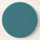 Uma Porta copos na moda e rodada festiva de Sandstone, com um padrão de holly sobre um fundo azul claro.