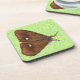 Esta incrível porta copos de cortiça apresenta uma fotografia muito detalhada de uma traça Vapourer, tirada com fotografia macro. Vocês podem ver claramente as antenas peludas e os belos padrões nas asas da mariposa. Esta mariposa é masculina, a fêmea dessa espécie é sem asas. O fundo é uma mistura de diferentes tons de verde e fornece um maravilhoso pano de fundo para esta linda mariposa.