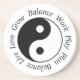 Equilíbrio - amor vivo do plano do jogo do trabalho cresça - porta copos do arenito com rotulação do roteiro e símbolo pretos de yang do yin.