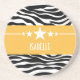 Tendy e moderna Porta copos Sassy Star Zebra Sandstone, com um fundo de impressão em preto-e-branco e uma borda amarela ousada, adornada com um divertido motivo de estrela. Este design feminino pode ser personalizado com o texto personalizado de sua escolha. Clique em "Personalizar" para encontrar mais opções de personalização.