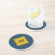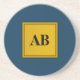 Design personalizado com quadro de ouro quadrado e modelo de texto personalizado para o seu monograma, em fundo azul