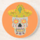Esta incrível porta copos de arenito apresenta uma imagem gráfica de design do Dia Mexicano dos Mortos (Dia de los Muertos), um crânio inspirado. O crânio é uma cinza pálida e está vestindo um sombrero amarelo. Ela tem dentes de ouro e girassóis mexicanos, também chamados de titonias em vez de olhos. O sombrero tem um cacto e está coberto por padrões de espiral bonito e pimentões-do-sul e vermelhos. O próprio crânio está coberto por flores bonito e coloridas de diferentes tipos.