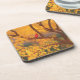 Num nítido mapa amarelo, um macho perches cardeal, vigiando seu companheiro no alimentador de pássaros próximo.