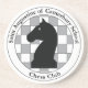Porta copos Sandstone com a Rua. Logotipo do Chess Club de A. Todas as receitas das vendas da merch store vão direto para apoiar a Rua.
