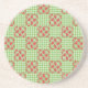 Uma Porta copos de Sandstone redonda, com estilo country, misturar padrões de dragões vermelhos bonitos em um fundo de gingham verde e branco.