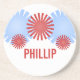 Porta copos divertida e divertida do Retro Fireworks com gráficos de fogos negros e exclusivos em vermelho e azul-claro. Esta porta copos legal e engraçada adiciona um pouco de talento patriótico enquanto protege sua mobília! Personalizar com um nome ou outro texto.