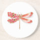 Articulado artificialmente, ouro, libélula joalhada com vermelho e asas decoradas com cereja japonesa vermelha, florescente e joalhada sobre fundo branco. Dourada Dragonfly.
