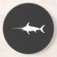 Branco sobre a forma de silhueta preta de um espadarte. Adicione uma mensagem ou nome da cidade para criar uma lembrança personalizada de uma viagem de pesca. A ilustração original obrigado para a Administração Oceânica e Atmosférica Nacional dos Estados Unidos.