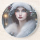 A porta copos de Férias apresenta uma bela princesa em chapéu branco aparado de pele e embrulha com folhagem de inverno num retrato de estilo vintage. Um belo retrato temático de Natal criado com software gerador de IA