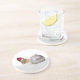 Este bonitinho esquilo vestindo um chapéu de Papai Noel está se espiando por trás de uma decoração de ornamento de bola de Natal prateada na neve e pronto para uma festa de Natal.