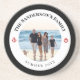 O design tem um círculo preto no lado externo e textos que podem ser personalizados no lado superior e inferior. Substitua a foto no centro por uma foto da sua família. Vai fazer um belo costume fazer presentes para um casal, amigos ou família.