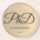 Uma porta copos de formando PhD com um tom de ouro (não folha) e esquema de cor preta. Mostra o grau, o nome e o ano. Simplesmente personalize esse custo, adicione-o ao seu carrinho, e tenha uma manutenção prática dessa grande conquista.
