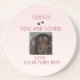 Give a pet mom a gift that speaks straight to the heart. This warm, sentimental sandstone coaster features your pet’s photo centered on a soft blush‑to‑cream gradient that feels gentle, comforting, and full of love. Above the image, the message “Mom You Are Loved” is paired with two tiny pawprints—an emotional reminder of the bond shared between a mom and her furry companion. Beneath the photo, the word “love” rests above a customizable nickname, creating a deeply personal keepsake that celebrates the joy, loyalty, and unconditional affection pets bring into our lives.