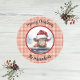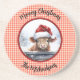 This charming and funny Sandstone coaster features a cute baby highland cow wearing a Santa hat on a snowy day, personalized with your or your recipient' name. This festive Christmas cow is trimmed in red and green, and the image is set against a farmhouse chic red gingham border. Edit the greeting if you want, and make sure to type the name you want in the Personalize box.