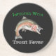 Presente perfeito para o ávido pescador de trutas, pescador de moscas ou pescadora de moscas na sua vida com uma cor de cheio e uma imagem detalhada de uma poderosa truta arco-íris saltitante com o texto Infectado com Febre Tranquila.