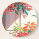 Uma ilustração botânica vibrante e serena, com plantas tropicais enxutas e folhas laranja-vermelhas banhadas à luz do sol quente. As sombras suaves e os modernos antecedentes de entrada criam uma atmosfera calma e de Verão. Perfeito para amantes da arte inspirada na natureza, design tropical mínima e confortável decoração doméstica.